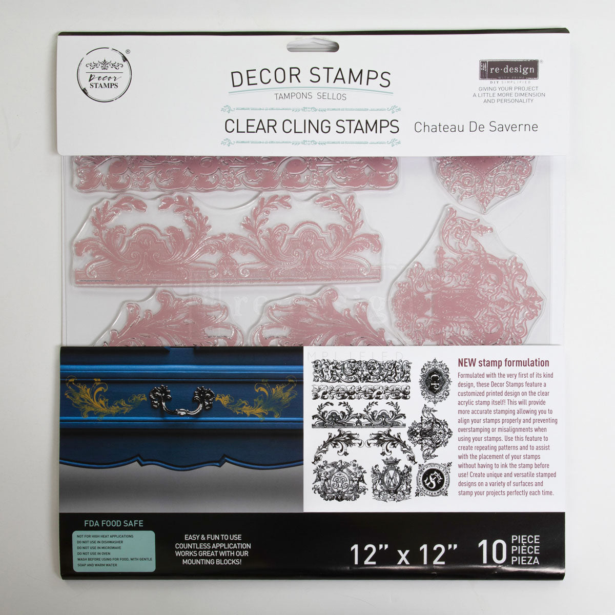 Introduce classic French elegance to your creations with the Château de Saverne Decor Stamp from Redesign with Prima. This reusable stamp showcases ornate scrolls, architectural flourishes, and vintage European detailing that instantly elevate furniture, journals, mixed-media art, canvas, clay, fabric, and DIY décor.